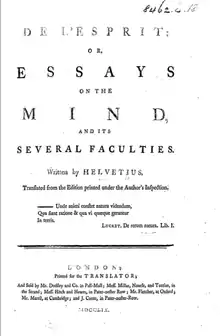 - De l'Esprit, or Essays on the Mind and Its Several Faculties by Helvétius - English translation by William Mudford, 1807, Google Books