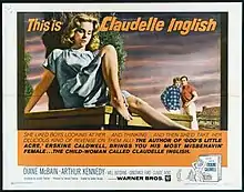 Claudelle Inglish is a 1961 American film directed by Gordon Douglas and based on the 1958 novel by Erskine Caldwell. It stars Diane McBain and Arthur Kennedy.[2] It was nominated for an Academy Award in 1962 for Best Costume Design (Howard Shoup).[3] The film was cast with many Warner Bros. Television contract stars, including Diane McBain who replaced the original choice for the lead Anne Francis.[4] McBain was then co-starring in Surfside 6 and had previously appeared in Parrish.