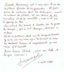 Claudi Arimany i Barceló (born in Granollers, Catalonia, December 29, 1955) is an internationald flautist, considered the direct heir, both in interpretative style and in musical concept, of Jean-Pierre Rampal, his mentor and colleague in many concerts.[1] Since the 1980s he has performed with leading international orchestras as a guest soloist, as well as teaching and working to study and revive pieces for flute.[2]