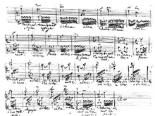 Examination of the original manuscript suggests that the Kyrie-Gloria and larger catechism chorale preludes were the first to be composed, followed by the "St Anne" prelude and fugue and the manualiter chorale preludes in 1738 and finally the four duets in 1739. Apart from BWV 676, all the material was newly composed. The scheme of the work and its publication were probably motivated by Georg Friedrich Kauffmann's Harmonische Seelenlust (1733–1736), Conrad Friedrich Hurlebusch's Compositioni Musicali (1734–1735) and chorale preludes by Hieronymus Florentinus Quehl, Johann Gottfried Walther and Johann Caspar Vogler published between 1734 and 1737, as well as the older Livres d'orgue, the French organ masses of Nicolas de Grigny (1700), Pierre Dumage (1707) and others.[10][11] Bach's formulation of the title page follows some of these earlier works in describing the particular form of the compositions and appealing to "connoisseurs", his only departure from the title page of Clavier-Übung II.[12]