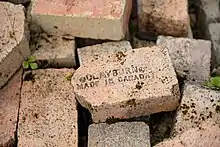 The plant was dismantled during the 1930s. The company paid local residents half a cent per brick they cleaned and stacked. In this way through the 1930s eleven kilns, six round and five rectangular ones, the storage buildings, the office, the tunnel dryer, and the massive smokestack bearing CLAYBURN 1911 were taken down, until by 1940 nothing except a few ruined foundations remained.