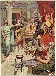In 328 BC, Artabazos resigned his satrapy of Bactria, and Alexander gave it to Cleitus.[8][11] On the eve of the day on which he was to set out to take possessions of his government, Alexander organized a banquet during a feast day for Dionysus in the satrapial palace at Maracanda (what is now the town of Samarkand).[6] At this banquet an angry dispute arose, the particulars of which are disputed by various authors.