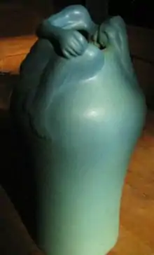 Artus Van Briggle settled in Colorado Springs in 1899 after establishing himself as a notable artist with the Rookwood Pottery of Ohio.[9][10] With Anne Louise (née Gregory), his new wife, Artus began exploring the Art Nouveau style in their pottery creations, drawing awards and accolades from the American and European art communities. Although he was a talented painter who had displayed and won awards in Europe, from 1899 until his death Artus devoted himself almost exclusively to the craft and art of pottery.[11][8] Van Briggle's Art Nouveau designs and distinctive matte glazes were awarded high honors from prestigious sources, including the Paris Salon, the Saint Louis Exposition, the Lewis and Clark Centennial Exposition, and the American Arts and Crafts Exhibition in Boston.