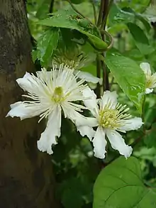 Clematis potaninii, the old man's beard, is a species of flowering plant in the family Ranunculaceae, native to Tibet and central China.[1][2] A deciduous woody vine, in the wild it is found climbing on slopes and in forests, particularly forest edges, at elevations from 1,400 to 4,000 m (4,600 to 13,100 ft).[3] Its cultivar 'Summer Snow', also known as 'Paul Farges', has gained the Royal Horticultural Society's Award of Garden Merit.[4]