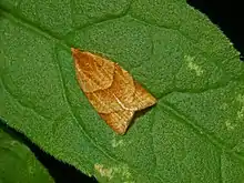 The wingspan is 17–20 mm. The forewings with a hardly sinuate, nearly vertical termen. The costal fold extends from the base to before middle. The ground colour is pale ochreous, somewhat brownish-strigulated. The basal patch is brownish dorsally and the central fascia ochreous-brown, it's anterior edge nearly straight. The costal patch is ochreous-brown, emitting a straight stria. The hindwings are whitish, apex ochreous-tinged, dorsal half light grey. The larva is grey-green; head and plate of 2 brown.[2]