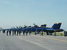 The Cleveland National Air Show is an annual air show held on Labor Day weekend at Burke Lakefront Airport in Cleveland, Ohio. It was established in 1964 as an indirect successor to the National Air Races.[1] The show includes stunt airplanes, modern fighters and alternates between the U.S. Navy Blue Angels and U.S. Air Force Thunderbirds every other year. The show typically runs from 9:00 a.m. to around 4:30 p.m. EDT. The show usually starts with smaller acts, and the Blue Angels or Thunderbirds perform last. Another regular attraction is the NASA Glenn Research Center, which usually has an exhibit located near the back of the show. There is usually some type of heritage or legacy flight, sometimes both.[2]