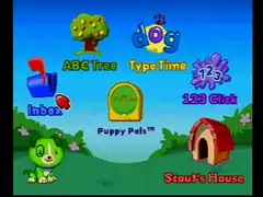 The ClickStart (with the slogan My First Computer) is an educational computer system created for children aged between 3 and 6 years (toddler to kindergarten) by LeapFrog Enterprises and was introduced in 2007. The entire system consists of a console unit and a wireless keyboard and mouse set. It also uses cartridges, simply called My First Computer Software.[1] The console also introduces Scout, a green-colored dog character who also appears in later LeapFrog products.[2]