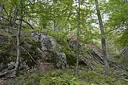 The site was recorded during the early 1970s as part of a comprehensive survey of the national park.[1]: 135 One of several sites in the Big Meadows complex, Cliff Kill lies at the meadow's eastern side, immediately east of a 10-meter cliff; boulders mark the northern edge,[1]: 112 and the headwaters of a small stream form the boundaries to the east and south.[1]: 113 The surveyors test excavated the site, discovering that Cliff Kill yielded the fewest artifacts of any site so investigated (seventy-one, versus hundreds or thousands at other sites), and almost half of these items were broken pieces of stone tools whose original purpose could not be identified.[1]: 191 Quartzite was the dominant material, being used for more than three-quarters of artifacts.[1]: 192 Some pieces of projectile points were identifiable as to their cultural affiliation, including three dating from the middle to late Archaic period and one Woodland point, thousands of years newer than the other three.[1]: 114