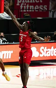 Omoruyi transferred back to Roselle Catholic High School going into his junior season, stating he did not wish to run from challenges.[1] He averaged 11.6 points, 7.1 rebounds and 2.8 blocks per game as a junior.[2] As a senior, Omoruyi averaged 14.2 points, 11.5 rebounds and 5.4 blocks per game, helping Roselle Catholic post a 22–7 record and win the NJSIAA's Non-Public B North title. Omoruyi was named the Gatorade New Jersey Player of the Year, First Team All-State by NJHoops.com and Second Team All-State by The Star-Ledger.[3] On the Nike Elite Youth Basketball League circuit, he averaged 11.8 points, 6.7 rebounds and 1.5 blocks per game for the New York Lightning.[4] He was considered to be a four-star prospect ranked 42nd in his class by Rivals. On 29 March 2020, Omoruyi committed to playing college basketball for Rutgers over offers from Arizona State and Auburn. He became the highest-rated recruit to select the Scarlet Knights since Kadeem Jack in 2010.[5]