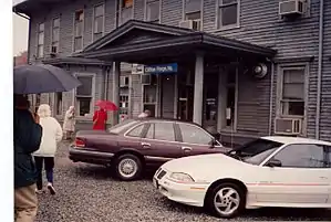 The modern two-story station building is a clapboard structure originally built by the Chesapeake and Ohio Railway (C&O) in 1906 as the railway's local offices. It became the passenger station in 1930 when the Gladys Inn was converted into the local YMCA building.[3] It sits just east of a major locomotive fuel facility for CSX Transportation.