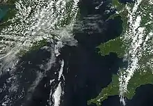 As Ireland is downwind of a large ocean, it is considerably milder in winter than other locations at the same latitude, for example Newfoundland in Canada or Sakhalin in Russia. The Atlantic overturning circulation, which includes ocean currents such as the North Atlantic Current and Gulf Stream, releases additional heat over the Atlantic, which is then carried by the prevailing winds towards Ireland giving, for example, Dublin a milder winter climate than other temperate oceanic climates in similar locations.[3]