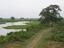 With the onset of the summer season the grasses in the burnt patches grow up quickly and the tender shoots turn into coarse blades, which no longer attract the animals. The temperature also goes up and the animals prefer to remain near the water sources especially around the numerous perennial beels and water streams inside the park.[3]