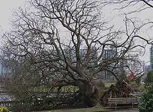The Hanukkah Eve windstorm of 2006 swept through Greater Vancouver on December 15, 2006, with winds reaching from 70 to 125 km/h (43 to 78 mph). In Stanley Park, it damaged or uprooted over 5,000 trees, and caused mudslides, one of which destroyed a section of the seawall.[44][45] Insured damages throughout the province were expected to reach CA$40 million and repairs to Stanley Park were expected to cost $9 million.[46][47]