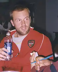 Clint Mathis (born November 25, 1976) is an American former professional soccer player who played as a forward or midfielder. He appeared at the 2002 FIFA World Cup, scoring one goal.[1] He also played in Major League Soccer for the MetroStars, where he scored five goals during a game in August 2000, a league record.[2]