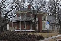 Belle Maison is a historic home located at Liberty, Clay County, Missouri. 404 S. Leonard Street Built in 1875. Its style is Italianate Asymmetrical This house consists of a two-story polygonal wing attached to a rectangular wing. The two-story veranda with railed porch and entrances for cross ventilation reflects a Southern influence. Interesting features include the stone-incised fluer-de-lis keystones. Source: Liberty's Living Legacy – 19th Century Houses and Buildings 1820 – 1899 Written by: Christopher Harris c. 2004