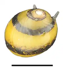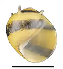 | Abapertural view of Clithon diadema shell. Scale bar is 10 mm. | |