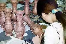 Production process of an enamel vase by Ando Cloisonné Company in Nagoya
