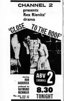 Close to the Roof is a 1960 Australian live television play which aired on ABC. Broadcast 14 December 1960 in Sydney, it was kinescoped ("telerecorded") and shown in Melbourne on 25 January 1961[1] (it is not known it was also shown on ABC's stations in Adelaide, Brisbane and Perth). Australian TV drama was relatively rare at the time.[2]