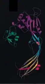 Quite surprisingly, the alpha toxin of C. septicum is not related to the alpha toxin of C. perfringens (another bacterium implicated in the pathogenesis of gas gangrene).[10] C. septicum alpha toxin does, however, exhibit similarities to aerolysin, another beta-pore forming toxin. Alpha toxin and aerolysin share approximately 72% sequence similarity and have numerous functional similarities as well.[13] Both proteins require cleavage by furin, or a furin-like protease, and then oligomerize to form transmembrane pores.[13][15] Similarities between the two toxins have also been discovered through analysis of the crystal structure of aerolysin. Aerolysin is a bilobar protein consisting of four domains (D1-D4).[15] The smallest lobe of aerolysin is missing in the alpha toxin of C. septicum, implying that the alpha toxin is monolobar with three domains, similar to domains D2-D4 in aerolysin.[15] Further research has led to the conclusions that the D1 domain is involved in receptor-binding and the D3 domain functions to prevent premature oligomerization of alpha toxin.[13]