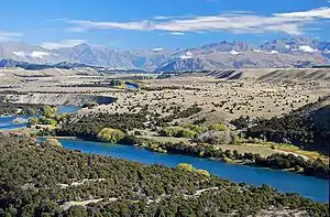 ![]() Upper Clutha Valley, looking upriver toward the Southern Alps | |