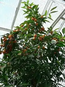Recent genomic analysis has shed new light on the phylogeny of Clemenia, potentially clarifying questions of its taxonomy. Clymenia polyandra was found to be completely homozygous, proving it to be a distinct species and not a kumquat hybrid.[8] Clymenia clusters within the genus Citrus in a clade with the Australian and New Guinean limes, which though formerly placed in genera Eremocitrus and Microcitrus are now considered members of Citrus.[8][9][10] Because excluding Clymenia would make Citrus paraphyletic, the Clymenia species may likewise belong in Citrus,[9][10] with Clymenia relegated to the status of a subgenus. It is included in Citrus in a 2021 classification of the family Rutaceae.[2]
