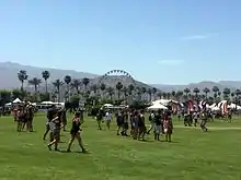 Around 1997, Goldenvoice was struggling to book concerts against larger companies, and they were unable to offer guarantees as high as their competitors, such as SFX Entertainment. Tollett said, "We were getting our ass kicked financially. We were losing a lot of bands. And we couldn't compete with the money."[10] As a result, the idea of a music festival was conceived, and Tollett began to brainstorm ideas for one with multiple venues. His intent was to book trendy artists who were not necessarily chart successes: "Maybe if you put a bunch of them together, that might be a magnet for a lot of people."[8] While attending the 1997 Glastonbury Festival, Tollett handed out pamphlets to artists and talent managers that featured pictures of the Empire Polo Club and pitched a possible festival there. In contrast to the frequently muddy conditions at Glastonbury caused by rain, he recalled, "We had this pamphlet... showing sunny Coachella. Everyone was laughing."[9]