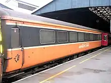 Between August 2016 and 2020, 10 of the Mark 3 carriages owned by Belmond are in service, painted in a dark blue livery. The 11th carriage, still in IÉ InterCity livery, was to be used for spares. It was hauled from North Wall to Inchicore Works in October 2016. Belmond ceased the Grand Hibernian service in 2021.[6] and throughout 2022 the carriages used on the service left Ireland for use elsewhere in Europe.