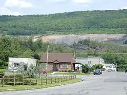 The town is virtually joined at the hip to nearby Lansford, to its immediate east—as both were founded as company towns on lands owned by and mined by the Lehigh Coal & Navigation Company (LC&N) while technically on opposite sides of the county lines. The history, business situation, and fortunes of not just the two, but of three towns, the third being the nearby Summit Hill, located a few thousand feet upslope, were tied in decades of co-development because the LC&N had built the western terminus of the nation's second railroad, the Summit Hill and Mauch Chunk Gravity Railway to ship coal out, and opened multiple mines throughout Coaldale and Lansford and the rest of the Panther Creek Valley in the days when railroads were coming into their own. The town has a bus stop with a mural on one side reading: "Everybody's Goal Is Mine More Coal" and the other side reading: "A Car More a Day Means More Pay".[3][4] The area on the western border of the borough is known as Seek.