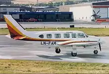In 1985, the company joined the joint venture Commuter Service, along with the other regional airlines Mørefly, based in Ålesund, Trønderfly, based in Trondheim, and Norsk Flytjeneste, based in Sandefjord. The goal was to coordinate the services, and grow through newer, smaller routes.[12] On 20 June 1986, Coast Aero Center was awarded the concession for flying from Stavanger to Geilo Airport, Dagali until 1991. The airline put into service a Beechcraft Super King 200.[13] The ridership from Geilo turned out to be too low, and both Coast Aero Center and Norving terminated their routes.[14] In 1986, the revenue was NOK 14 million and the company had 24 employees.[1] That year, they chose to connect to the PNR/Smart booking system.[4] In 1988, the company also bid for operating parts of the Norwegian Air Ambulance.[15]