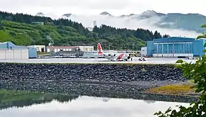Coast Guard Air Station Kodiak is an Air Station of the United States Coast Guard located in Kodiak, Alaska. It is the largest in the service's Pacific Area, with a crew of 85 officers and 517 enlisted personnel, and the largest Coast Guard Base in terms of physical size at 23,000 acres.[1] It is a tenant command of Base Support Unit Kodiak, and shares its airfield with Kodiak Airport. The station operates MH-60 Jayhawk and MH-65 Dolphin helicopters, and the HC-130 Hercules fixed-wing aircraft.[2]