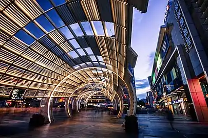Designed by the US architectural firm Callison, the mall opened in 2007 consisting five stories. It hosts the Coastal City Cinema,[3] an ice rink, an AEON supermarket and several dozens of smaller Chinese and international shops and restaurants.[4]