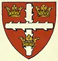 | Blazon | Gules four Pieces of Wood raguly conjoined in a cross proper each side arm transfixed with a Nail palewise Sable ensigned by an Ancient Crown Or and that in base enfiling a like Crown and transfixed by a like Nail in bend |