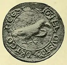 The oldest known device associated with Colchester is the raven, found on seals dating back to the 11th or 12th century. It continued to be used for many centuries as a symbol of the Port of Colchester. It has been suggested that the raven may have been derived from a symbol of the Danes when they ruled the area.[3]