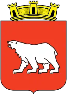 “Gules a polar bear passant Argent, for a crest a mural crown Or”