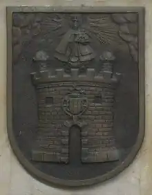 The coat of arms of Medellín is the heraldic emblem that represents the Colombian city of Medellín, capital of the department of Antioquia. It has its origin in the concession of its use by King Charles II of Spain by means of the Royal Decree given in Madrid on March 31, 1678.[1] The escutcheon also recalled in some of its elements the ancient coat of arms of the Spanish town of Medellín, in Extremadura, from which the city takes its name.[2]