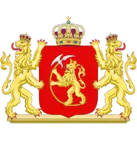 | Blazon | Gules, a lion rampant Or, crowned and bearing an axe Or with blade Argent |