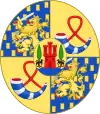 Children of Queen/Princess Juliana (Princesses Irene, Margriet and Christina) | Oval shield-shaped, a quartering of the Dutch royal arms with Orange; over all an escutcheon with the arms of the House of Lippe (paternal arms).[7] |