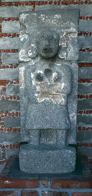 The incense altar was identified by a stone sculpture representing a female character and some clay incense burners that were found during the excavations. The form of these is easily identified in the Mendocino Codex; they resemble big ladles with long handles.[2]