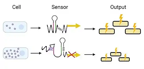 Riboswitches are ideally suited to be engineered into biosensors due to their ability to undergo a conformational switch upon binding to specific ligands.[4] These sensors are constructed with a cobalamin riboswitch upstream of a gene encoding for a reporter molecule. The nature of the reporter molecule can vary depending on the desired detection method. For example, the reporter gene can encode for green fluorescent protein (GFP) when fluorescence-based detection methods are desired.[22] In the presence of ligand, the riboswitch undergoes a conformational change which blocks the ribosomal binding site, halting transcription of the reporter gene.