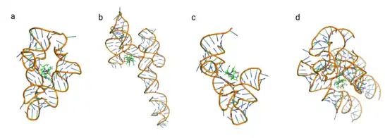 - Ariza-Mateos A, Nuthanakanti A, Serganov A (August 2021). "Riboswitch Mechanisms: New Tricks for an Old Dog". Biochemistry. Biokhimiia. 86 (8): 962–975. doi:10.1134/S0006297921080071. PMC 8961697. PMID 34488573. S2CID 237431666.