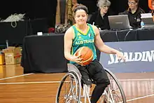 In the first game of the 2012 Paralympics tournament against Brazil, which her team won 52–50, she played 32:34 minutes.[21] She scored 18 points against the Brazil women's national wheelchair basketball team, and had seven rebounds.[21] In the team's third game of pool play, where they lost to Canada 50–57, she played 29:43 minutes and scored 12 points.[22] In the team's fourth game of pool play against the Netherlands women's national wheelchair basketball team that her team won 58–49, she played 25:09 minutes, and scored ten points.[23] In her team's quarterfinal 62–37 victory over Mexico women's national wheelchair basketball team, she played 17:08 minutes, and scored twelve points.[24] Her team met the United States women's national wheelchair basketball team in the semifinals, where Australia won 40-39 and she played 24:37 minutes, and scored six points.[25] In the gold medal game against the Germany women's national wheelchair basketball team, she played 29:40 minutes.[26] While her team lost 44-58 and was awarded a silver medal, she scored six points, and had five rebounds.[26]