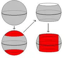 - : If we remove a cylinder from the 2-sphere, we are left with two disks. We have to glue back in – that is, two disks - and it's clear that the result of doing so is to give us two disjoint spheres. (Fig. 2a)