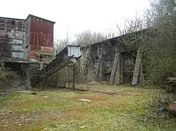 A seventh kiln was erected at the western end of the south battery in the 1940s, which was used to dry chalk with the eighth kiln being added at the opposite end in 1958.[3] By the end of the 1950s, the north battery had been demolished and only the eastern end wall now remains.[16] Following the demolition of the north battery, the overhead crane was also dismantled and the south battery was enlarged and converted to draw kilns. Following the dismantling of the crane, the kilns were loaded using a dragline excavator placed on the higher ground to the south and unloaded by a portable conveyor belt pushed into the draw holes.[3]