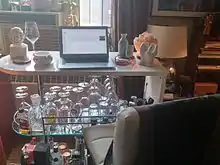 Some persons may designate either a room or an area of a room as a home bar. Furniture and arrangements vary from efficient to full bars that could be suited as businesses.