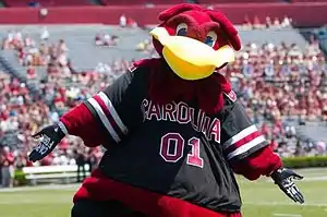 Cocky is the costumed mascot of the University of South Carolina athletics teams. He represents a cartoon version of a gamecock (a fighting rooster).