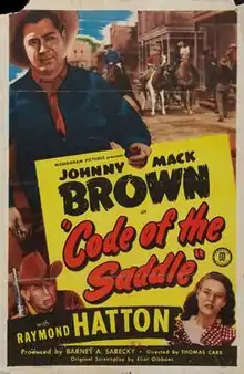 Code of the Saddle is a 1947 American Western film directed by Thomas Carr and written by Eliot Gibbons. The film stars Johnny Mack Brown, Raymond Hatton, Riley Hill, Kay Morley, William Bailey and Zon Murray. The film was released on June 28, 1947, by Monogram Pictures.[1][2][3]