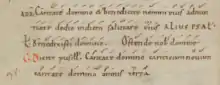 Particularly during the golden age of the abbey – during the time of Notker, Ratpert and Tuotilo – St. Gallen was known for the ingenuity as well as the quality of the produced chants. Consequently, individual tropes were received quite broadly within Europe: Tuotilo's trope “Hodie cantandus est” for the Introitus “Puer natus est”, for instance, can be found in over 100 European manuscripts, mostly concentrated in copies in German-speaking areas.[12] Simultaneously, a not insignificant number of copies from southern France, the Alsace as well as northern Italy have been recorded. Further tropes also appear in manuscripts in the same areas, but not to the same extent.[13]