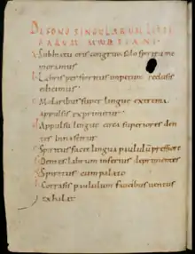 | Versus | 23-50 | Processional hymns in metric diction, mainly used during specific celebrations. A portion of the versus composed at the abbey is attributed to Ratpert | |