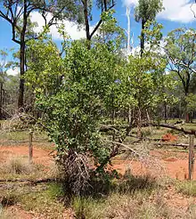 Coelospermum reticulatum is a species of flowering plant in the family Rubiaceae. It is native to New Guinea, the Northern Territory, and Queensland. Its natural habitat is dry rainforest and moister Eucalyptus woodland. The plant is an important source of dye for Aboriginal people. The former genus Pogonolobus with its sole species, Pogonolobus reticulatus, has been synonymised with this species.[1]