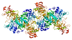 Further, all enzymes have two different domains.[1] These domains can either occur on the same polypeptide or can be separated between two different polypeptides. In some cases, the genes for the domains are duplicated in the genome.